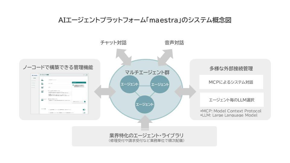 AIエージェントプラットフォーム「maestra」のシステム概念図