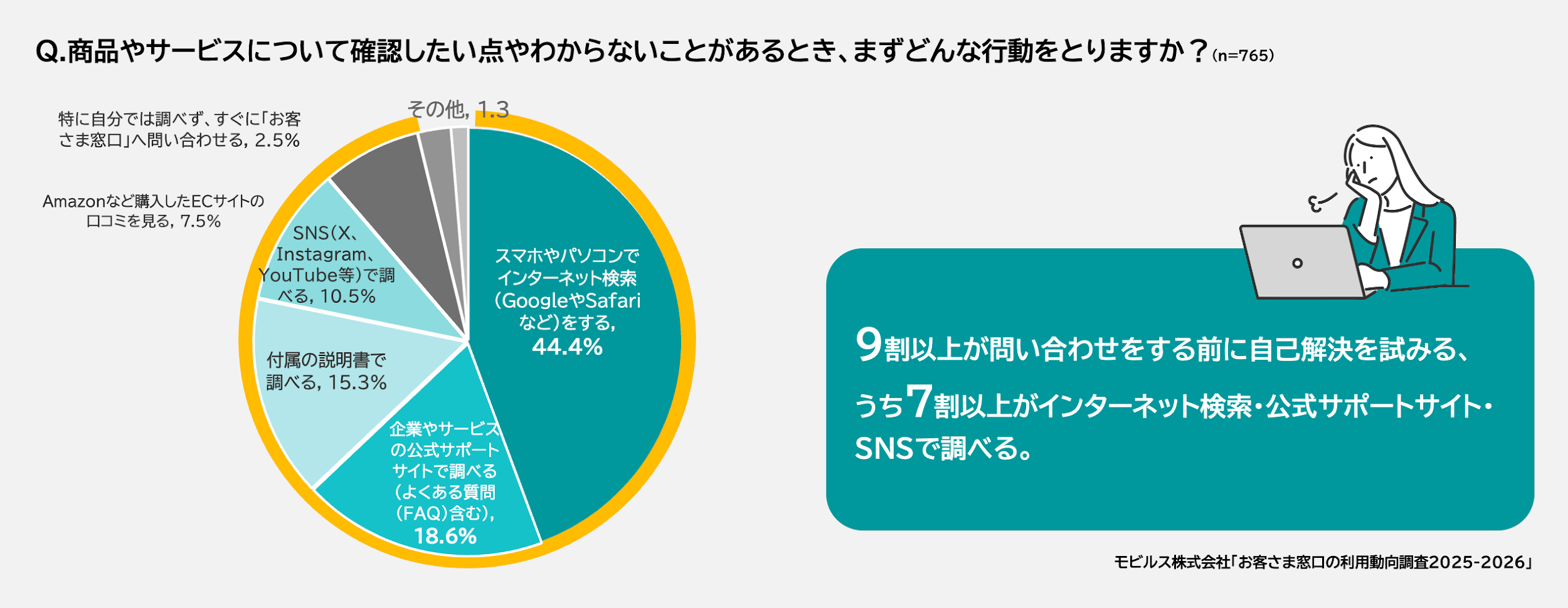 ・96.2%が問い合わせ前に自己解決を試み、73.5%がWeb検索や公式サイト、SNSを活用。